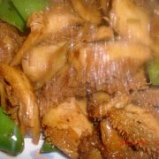 河蚌肉、干辣椒、葱、姜、糖、盐、生抽、醋、料酒、胡椒、鸡精、麻油。