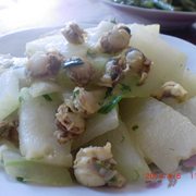 冬瓜、毛贝、葱花、盐、豆油、麻油。