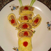 瘦肉、榨菜、鸡蛋、油、盐、糖、玉米粉、番茄酱、葱段。