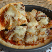 榨菜片、蘑菇片、肉糜、披萨面饼、马苏里拉奶酪、披萨酱。