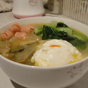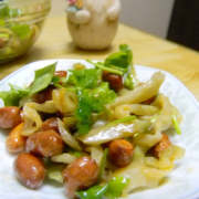涪陵榨菜片、台湾小烤肠、龙须面、鸡蛋、青菜。