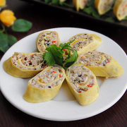 乌江低盐榨菜、鸡蛋、水发香菇、火腿、冬笋、黑木耳、水发鱿鱼丝、鸡肉、红椒、葱白、生姜、食盐、料酒、香油、水淀粉。