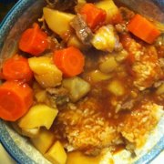 牛腩、番茄、土豆、洋葱、胡萝卜、番茄酱、淡奶油、糖、盐、酱油、大料。