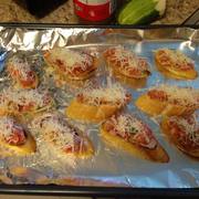 番茄、长条面包、茴香叶、蒜瓣、起司、洋葱、橄榄油、盐巴。