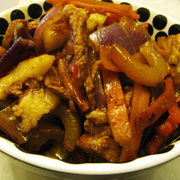 猪肉、胡萝卜、洋葱、红辣椒、姜葱、白糖、料酒、鸡粉。