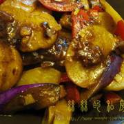 马铃薯、茄子、灯笼椒、红辣椒、蒜头、面豉酱、白糖、鸡粉。