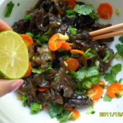 黑木耳、胡萝卜、葱、姜、蒜、香菜、青辣椒。