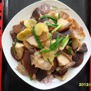 新鲜香菇、五花肉片、姜片、蒜片、盐。