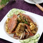 梭子蟹、鸡蛋、盐、料酒、咖喱粉。
