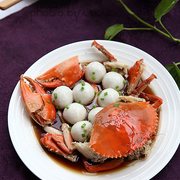 青蟹、鲜肉汤圆、姜葱、盐、料酒、蒸鱼豉油、食用油。
