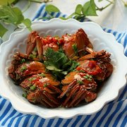 梭子蟹、黄瓜、鸡蛋白、姜、葱、盐、白酒、白醋、鸡精。
