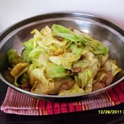包菜、猪肉、葱、姜、生抽、蚝油、盐、糖、鸡精、醋。