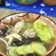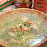 牡蛎、豆腐、青蒜、芹菜、葱、白菜、水发香菇、盐、水淀粉。