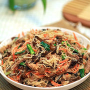 米粉、猪肉、胡萝卜、木耳、生抽、葱、蒜、盐、生粉。