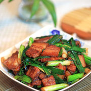 五花肉、蒜苗、生抽、老抽、盐、糖。