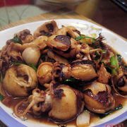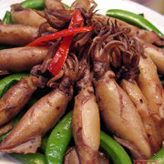 鱿鱼筒、甜豆、姜、葱、红椒、盐、生抽。