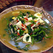 豆苗、鸡腿菇、枸杞子、姜、蒜、肉汤、盐、熟鸡蛋。