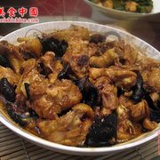 三黄鸡、冬菇、木耳、姜、盐、生抽、生粉。