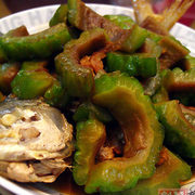 金边鲳鱼、凉瓜、生抽、姜、盐、鸡精。