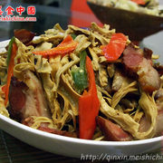 腊猪面肉、笋干、辣椒、蒜头、鸡粉。