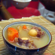 排骨、四季豆、蒜、生抽、盐、鸡精。