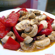 口蘑、红泡椒、蚝油、蒜、红葱头。