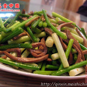 猪腰、蒜薹、辣椒、蒜、姜、盐、鸡精。