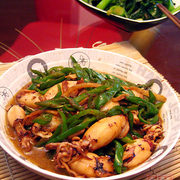 鱿鱼、尖椒、姜、生抽、盐、鸡精。