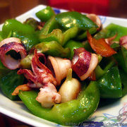 鱿鱼、青红椒、姜、蒜、生抽、盐、鸡精。