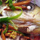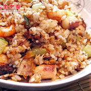 剩饭、虾、鱼、鱿鱼、黄瓜、姜、红葱头、盐、胡椒粉、橄榄油。