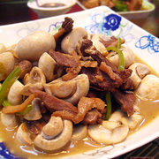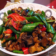 鸭脯肉、口蘑、姜、蒜、尖椒、盐、生抽。