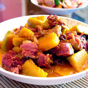 叉烧、西葫芦、蒜、盐、生抽、叉烧汁。