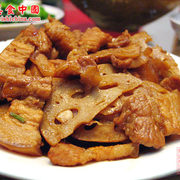 五花肉、莲藕、生抽、老抽、蒜头、糖、料酒、盐。