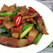 五花肉、木耳、腐竹、青红椒、蒜头、盐、生抽。