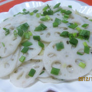 莲藕、香葱叶、精盐、白醋、白糖、姜、植物油。