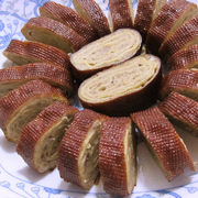 鸡脯肉、猪五花肉、鸡蛋、紫菜、胡萝卜、生抽、精盐、味精、白胡椒粉、生粉、白糖、料酒、蛋清、水淀粉。