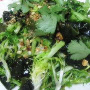 海藻、苦苣、花生米、香菜叶、辣椒油、香油、生抽、精盐、白糖、香醋、味精、蒜末。