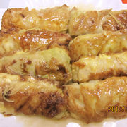 白菜叶、猪五花肉、鸡蛋、植物油、生抽、蚝油、白胡椒粉、白糖、料酒、精盐、生粉、蛋清、葱姜、味精、面粉。