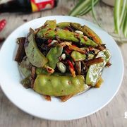 扁豆、酸腌菜、油、盐、蒜、味精。