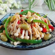 金针菇、青豆豉、青椒、油、盐、蒜、鸡粉。