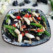 水发黑木耳、鱿鱼须、油、盐、尖椒、小米辣、姜、蒜、料酒、生抽、鸡精。