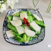 地瓜、荷兰豆、油、盐、葱、辣椒、鸡粉。