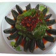 皮蛋、小青椒、生抽、老干妈辣子鸡丁、香油、花椒油、鸡精、盐。