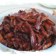 五花肉、笋干、姜、蒜、料酒、冰糖、生抽、老抽、八角、香叶、老干妈、干辣椒、白胡椒粉。