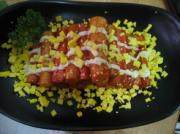 糯米粉、鸡蛋黄、粟粉、蟹棒、辣酱、盐、蒜汁、水、酱油、糖、芝麻、沙拉酱。