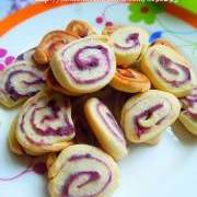 普通面粉、紫薯、淀粉、黄油、盐、炼乳、蛋黄。