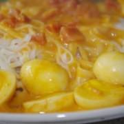 面条、腊肠、鹌鹑蛋、沙拉酱、韩式甜辣酱。
