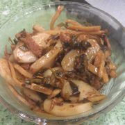 芹菜、酱肉、豆腐干、油、盐、味精。