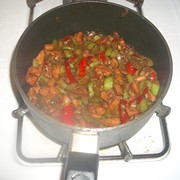 鸡丁、芹菜、红椒、黑椒汁、黑胡椒粉。