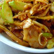 挂面、黄瓜丝、鸡蛋丝、土豆丁、红萝卜丁、青椒丁、猪肉丁、大酱。